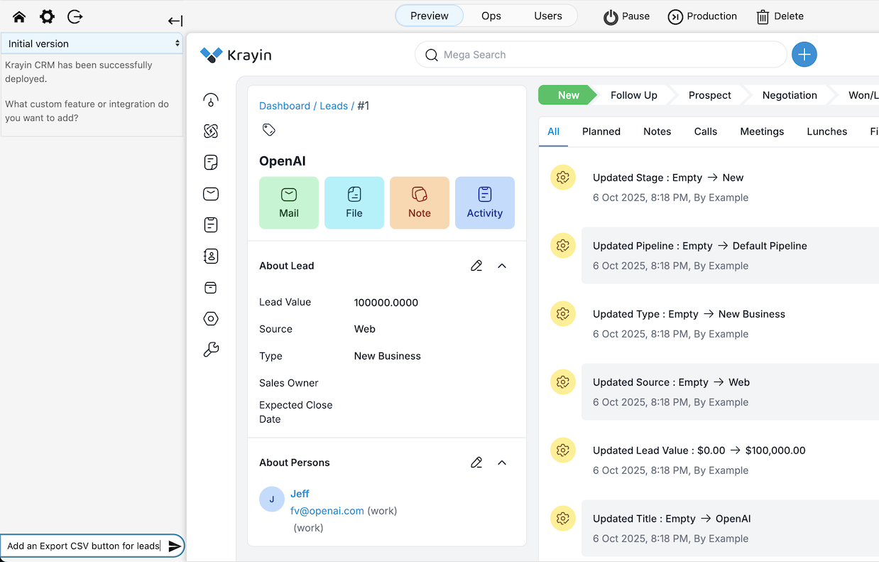 Users add features with plain-language prompts, no coding required. - 2. Zero-Code Exposure